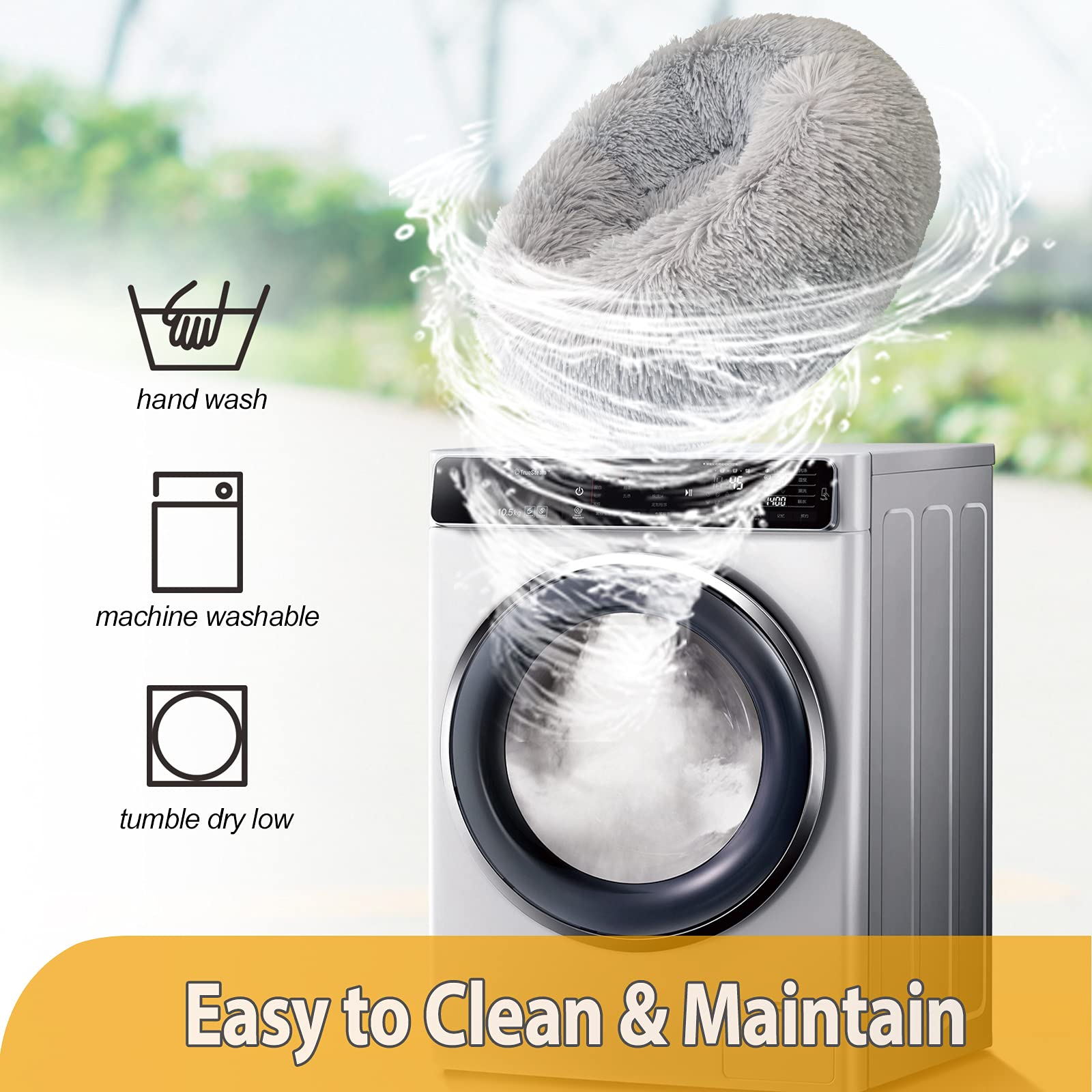 Die Pflege des Bettes ist besonders einfach. Es kann per Hand oder in der Waschmaschine im Schonwaschgang mit kaltem Wasser gereinigt werden. Das Trocknen erfolgt bei niedriger Temperatur im Trockner. Bleichmittel sollten nicht verwendet werden. Das Hundebett wird vakuumverpackt geliefert und kann bei der Ankunft zunächst flach erscheinen. Durch Aufschütteln und leichtes Kneten sowie eine Ruhezeit von ein bis zwei Tagen erhält es seine volle Flauschigkeit zurück.